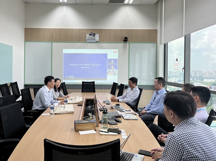 3月26日上午,清华大学出版社党委书记、董事长宗俊峰,副总编辑孙宇拜访新加坡圣智学习集团,与亚洲区董事总经理、副总裁李联和等7人展开交流。
