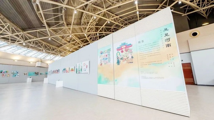 郑州二七纪念馆、周口特色美食胡辣汤、信阳秀美茶山……展厅现场展出张兴华教授创作的反映河南各城市风貌的插画作品百余幅,其中大部分作品选自《又见河南》绘本。插画作品视角独特、笔墨充满趣味,每一幅作品都如同一块色彩斑斓的拼图,每一片拼图都蕴含着丰富的历史故事,吸引了众多参观者前来寻找老家记忆,品味如画河南。