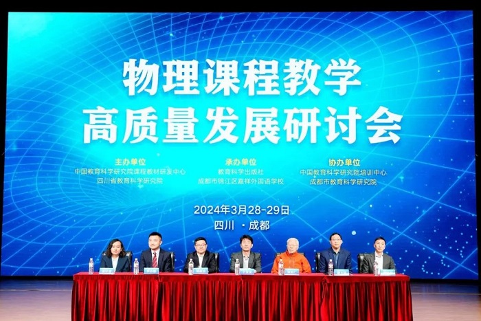 3月28—29日,由中国教育科学研究院课程教材研发中心、四川省教育科学研究院主办,教育科学出版社、成都市锦江区嘉祥外国语学校承办,中国教育科学研究院培训中心、成都市教育科学研究院协办的物理课程教学高质量发展研讨会在四川成都召开。中国教育科学研究院副院长于发友,教育科学出版社党委书记兼社长、中国教育科学研究院课程教材研发中心主任郑豪杰,四川省教育科学研究院副院长廖大凯等做开幕式致辞,教育科学出版社副社长张叶青主持了开幕式。全国各省、市级物理教研员、骨干教师,部分省市教育行政部门、教研部门和中小学校相关负责同志近700人参加了大会。