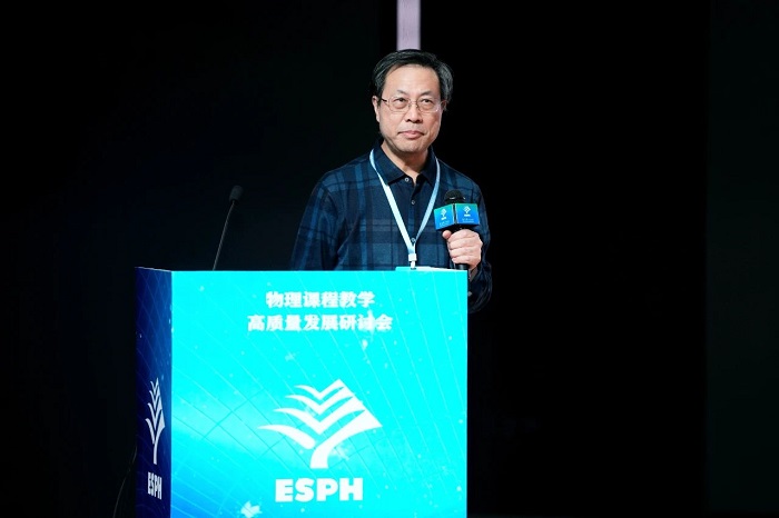 教科版义务教育和普通高中《物理》教材总主编吴祖仁以“四十年中学物理课程改革研究实践与体会”为题,梳理了自1984年“全国中学物理教学改革学术讨论会”以来我国物理教育四十年的改革探索征程,介绍了在由三维目标向核心素养理念转变的过程中,教科版义务教育《物理》教材借助脑科学学习理论,构建了横向的知识问题结构和纵向的主题能力学习活动,帮助学生在研究设计、实践制作、讨论交流中提升核心素养。