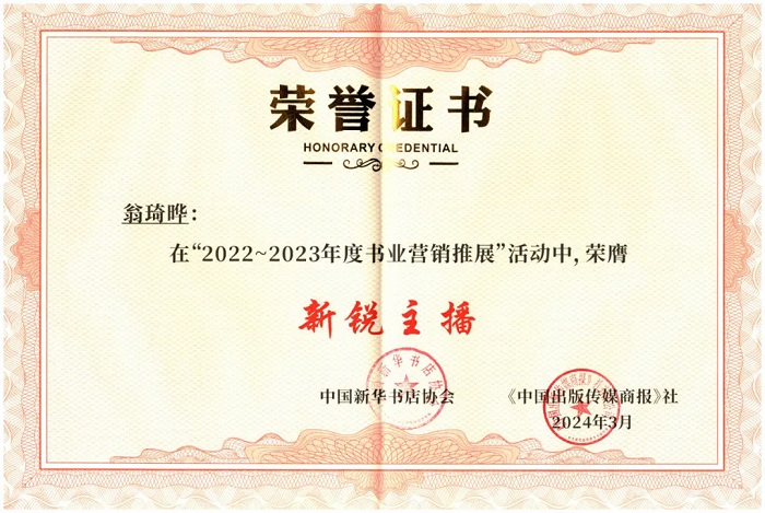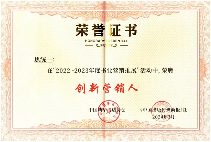 苏州大学出版社“旧书焕新生--苏州大学出版社江苏书展图书惠民活动”荣膺“营销金案”,营销部业务经理焦统一荣膺“创新管销人”,营销部业务经理翁琦晔荣膺“新锐主播”。
