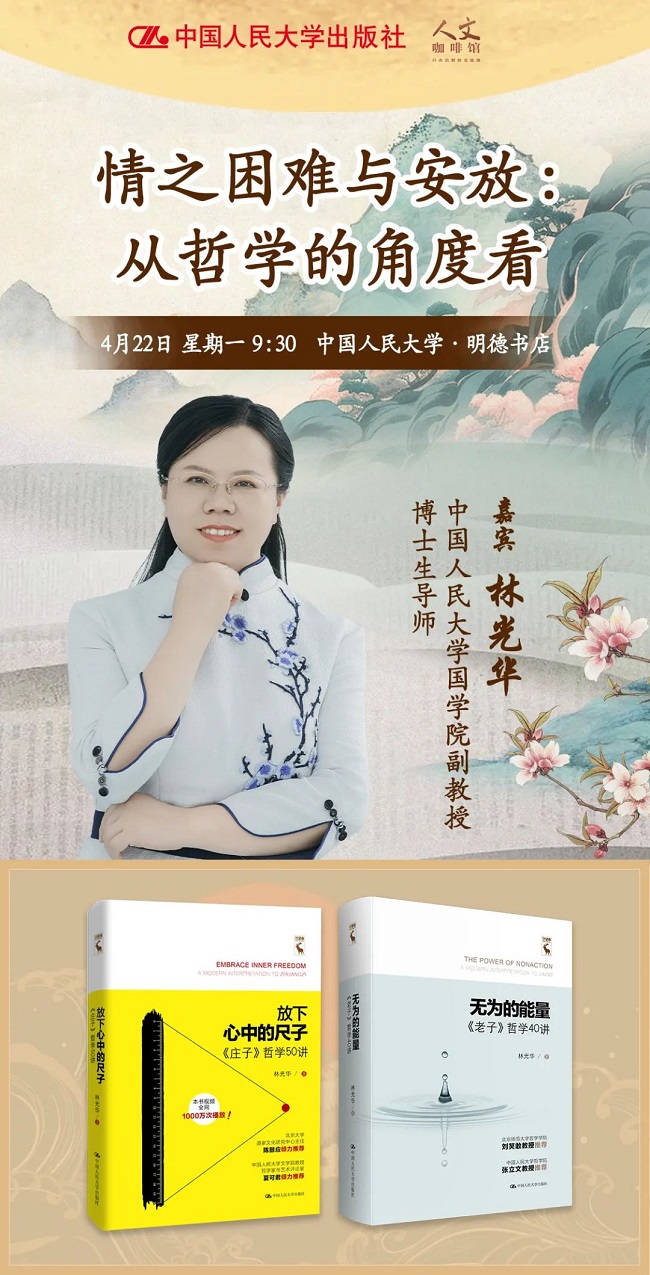 4月22日9:30,中国人民大学国学院副教授、博士生导师林光华,将用哲学的光辉照亮爱情的道路,带领我们通过哲学的思考,在现代爱情中找到自我。