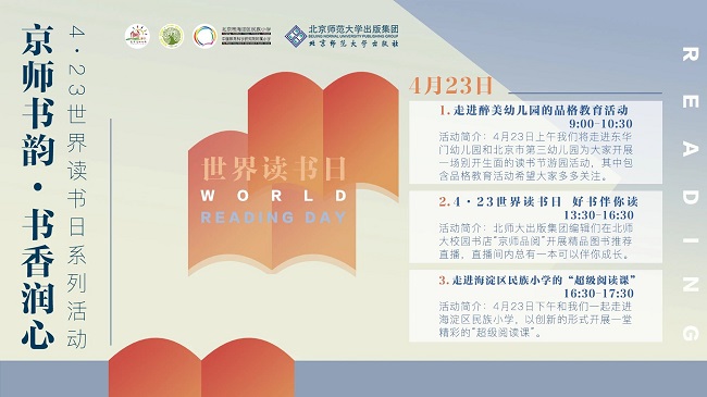 在这个特殊的日子里,北京师范大学出版集团将举办“京师书韵·书香润心 ”全天候直播活动,和大家一起“零距离”共读好书,共享阅读之乐!