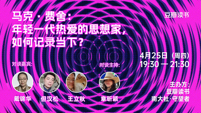 4月25日(周四)19:30—21:30,豆瓣读书联合南大社·守望者,特别邀请北京大学中文系教授戴锦华、南京大学英文系教授但汉松与本书译者王立秋,一同畅聊当下症候与年轻人“抑郁的快乐”,借费舍之眼,看21世纪初“人的境况”。