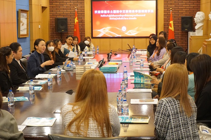 刘捷向来访学员表示,外研社始终秉承“记载人类文明,沟通世界文化”的出版理念,在向中国介绍世界的同时积极向世界介绍中国,传播中国语言与文化。以国际化发展为特色,外研社从20世纪80年代开始与海外出版社进行版权贸易,是中国最早开展国际合作的出版社之一。面向泰国,外研社出版了《我爱汉语》等教材和读物,深受泰国师生欢迎。外研社愿与泰国教育机构加强联系,为推动中泰国际中文教学、促进中泰人文交流和民心相通做出新努力、取得新业绩。