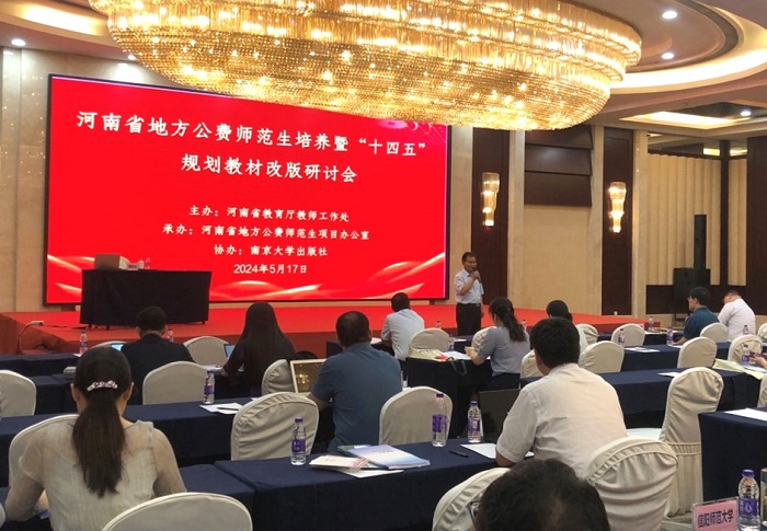 5月17日,河南省地方公费师范生培养暨“十四五”规划教材改版研讨会在郑州召开。河南省教育厅教师工作处、河南省地方公费师范生培养项目执行办公室、南京大学出版社,以及河南师范大学、信阳师范大学等承担地方公费师范生培养任务的高等院校二级学院相关负责人、专业负责人等70余人参会。河南省地方公费师范生培养项目执行办公室负责人侯宏业主持会议。