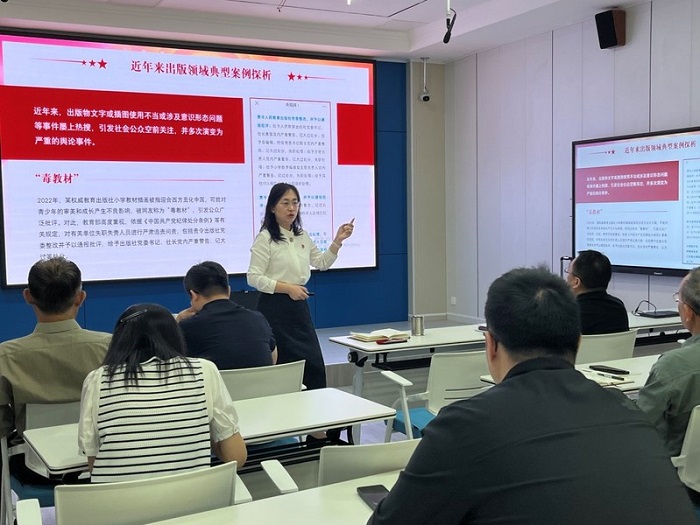2024年5月31日,根据学校党纪学习教育工作安排,为帮助党员深刻理解《中国共产党纪律处分条例》内容要求,中国海洋大学出版社党支部书记刘文菁为出版社全体党员讲授《学纪知纪明纪守纪把好出版意识形态关》党课。