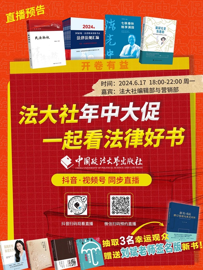 中国政法大学出版社年中大促:直播抽奖送作者签名新书(6.17日18:00-22:00)
