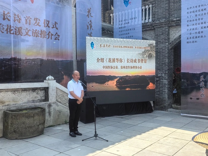 许俊松在致辞中向莅临活动的各位老领导、作家、诗人、学者、嘉宾及新闻媒体表示热烈欢迎,向《花溪等你》长诗作者小语致以诚挚的敬意,向社会各界长期以来对花溪区经济社会发展给予的关心支持表示衷心感谢。他说,《花溪等你》长诗创作历时十个月,字里行间情真意切、清幽明朗、境界高雅、韵味十足,是一扇展示花溪的明亮窗口,是一抹眷恋花溪的浓浓情愫,是一次走进花溪的盛情邀请。