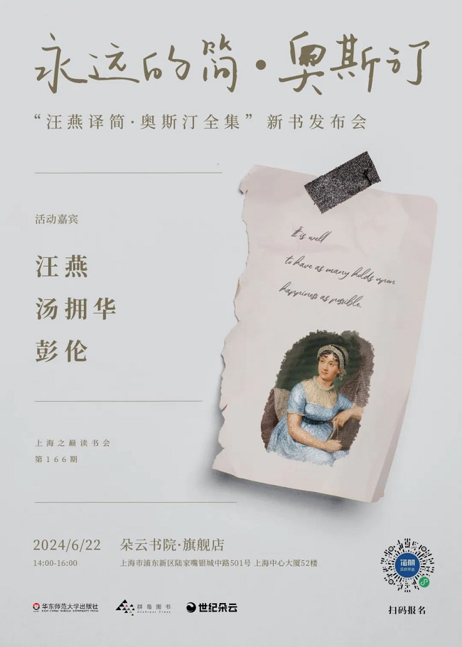 6月22日(周六)下午两点,让我们跟随汪燕、汤拥华、彭伦的步伐,走近简·奥斯汀,领略她背后的文学世界。