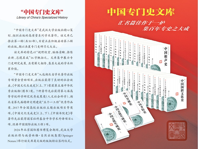 “深化文明互鉴,合作共赢未来”,2024年第三十届北京国际图书博览会将于6月19日拉开序幕。武汉大学出版社将在湖北展团区隆重举行“中国专门史文库”系列学术著作英文版权转让暨战略合作签约仪式。