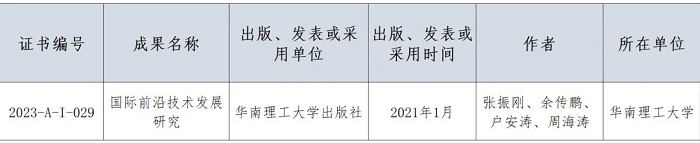 日前,《广东省人民政府关于颁发第十届广东省哲学社会科学优秀成果奖的通报》正式公布,共批准授予500项成果奖项。其中,华南理工大学二级教授张振刚等编著,华南理工大学出版社出版发行的《国际前沿技术发展研究》荣获第十届广东省哲学社会科学优秀成果一等奖。
