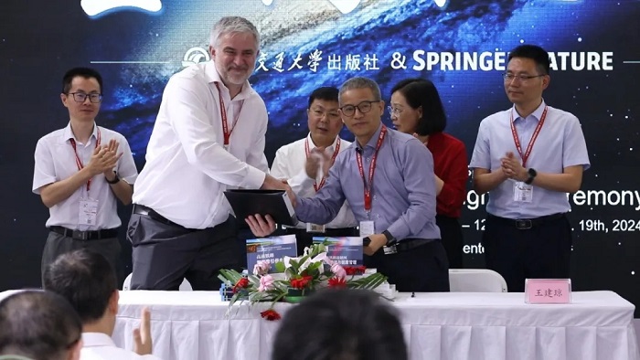 杨爱华表示,西南交通大学培养和造就的栋梁人才数以万计,他们亲身参与并见证了中国轨道交通事业从跟跑到并跑、从并跑到领跑的历史性跨越。她在致辞中强调:“施普林格·自然集团自2021年起与出版社结缘,双方在多次紧密合作中建立了深厚合作友谊。此次双方再度携手,联合签约出版‘中国高铁前沿科技出版工程’系列图书,标志着双方合作进一步向更宽领域、更深层次迈进。这一系列丛书的出版,旨在全球交通‘清洁低碳,绿色高效’发展的共同大背景下,将智能牵引供电系统的相关前瞻性、引领性研究技术呈现给世界读者,我们真诚期待,系列丛书的出版将对推动世界各地轨道交通突破“瓶颈”,向‘安全、便捷、绿色、高效、经济、包容、韧性、可持续’方向探索迈进,起到宝贵的推动作用。”