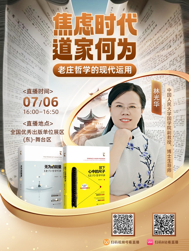 2024年7月6日,中国人民大学出版社邀请林光华老师做客江苏书展直播间,为大家分享老庄哲学的现代智慧。