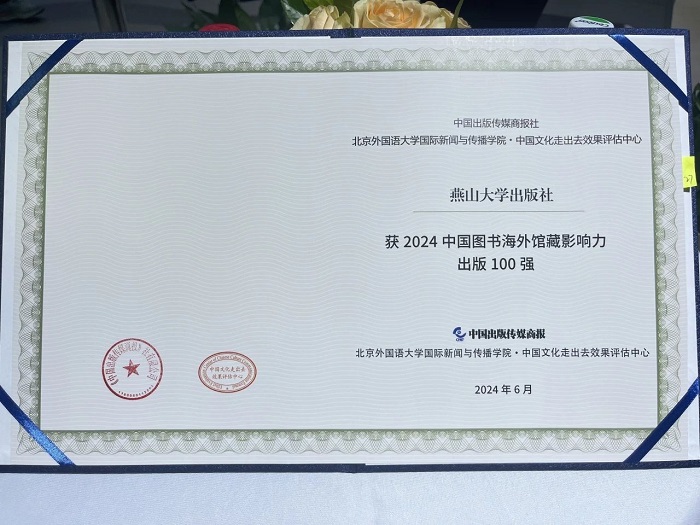 近日,2024年度“中国图书海外馆藏影响力研究报告”在第30届北京国际图书博览会上正式发布。燕山大学出版社排名第94位,连续三年入选“中国图书海外馆藏影响力出版100强”。