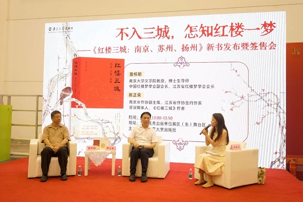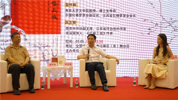7月5日,中国作家协会会员、南京市作协副主席陈正荣携新书《红楼三城》,与南京大学文学院教授、江苏省红楼学会会长苗怀明一起走进“红楼三城”之一的苏州,在江苏书展上带领读者一起,展开一场“红楼”城市文化之旅,探寻城与文、城与人、城与梦的奇妙联结。