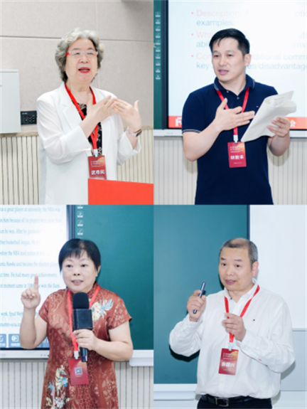 为指导老师们更好地将理论应用于实践,本次大会还特别组织了会前工作坊。北京师范大学武尊民教授、北京师范大学林敦来教授、华南师范大学朱晓燕教授和英国布里斯托大学余国兴教授围绕“基于教材单元活动的评价任务设计”“指向核心素养的试题分析与命制”“基于语篇分析的英语课堂教学与评价任务的设计”“多模态测评”等主题开展。四位专家通过厘清概念、分享实例、小组讨论、共同合作的形式,帮助现场每一位老师深度学习、深度参与、深度实操。