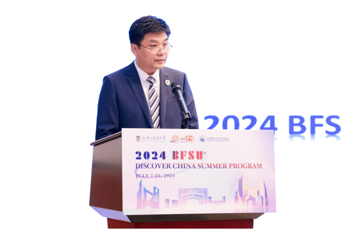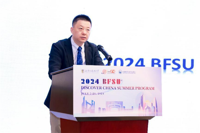 暑期班授课教师代表、北外科研处处长张天伟在发言中表示,本次暑期班将带领营员们全方位、多角度地认识中国。希望这段时间的学习能够为大家深入了解中国提供重要指引,为促进世界各国民间交流积蓄青春力量。他对营员提出三点期望:一是认识到交流与沟通的重要性;二是保持开放视角和包容心态;三是尽情体验中国文化,发现当代中国。
