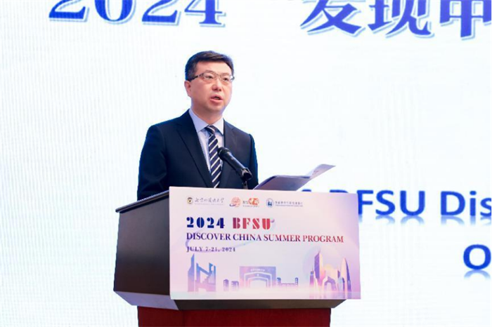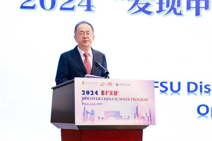 贾文键向营员们讲述了伊莎白教授悉心观察和了解中国的故事,鼓励大家利用本次机会亲眼目睹中国的社会发展和文化传承,亲耳聆听中国人民的故事和心声,感受现代中国的脉动与活力,并身体力行参与青年对话、助力人文交流。贾文键还介绍了北外的办学历程与特色,强调了学校对国际交流与合作的重视。他表示,北外期待“发现中国”项目为增进中国与各国青年间的珍贵友谊搭建友好桥梁,为世界各国的教育交流、人民交往注入积极力量。