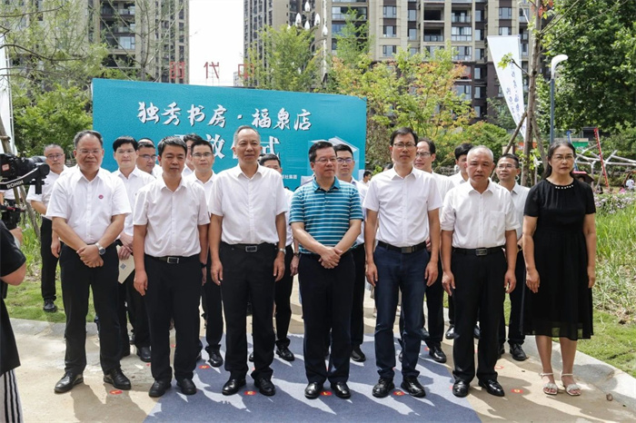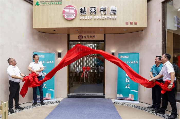 夏世飞、贺祖斌、孙学标、黄轩庄共同为独秀书房·福泉店揭牌。随着红绸缓缓落下,独秀书房·福泉店在一片热烈的掌声中正式面向福泉市民开放。