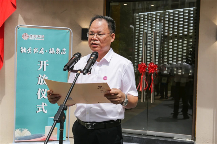 黄轩庄在致辞中指出,“独秀书房”是广西师大出版社一张亮丽的名片,它是在全民阅读、书香社会提升为国家战略的时代背景下,在广西师范大学党委书记贺祖斌教授提出的“人文实验室”理念指导下,推出的实体书店品牌。在福泉市委市政府的关怀帮助下,在广西师范大学的悉心指导下,独秀书房·福泉店将“人文实验室”的理念带进这片红色热土,黔桂两地的文化交融将向更深层次迈进,助推广西师大与福泉市在新时代新征程上,取得新成就,更上新台阶。