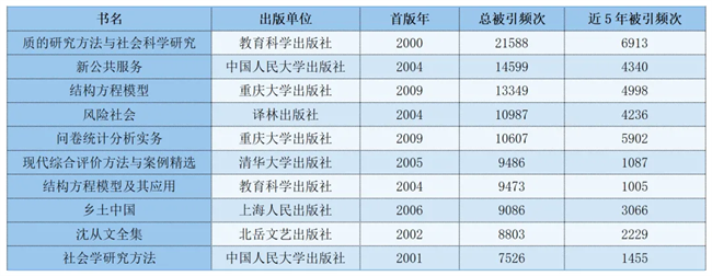 近日,“出版人杂志”公众号发布“学术圈必看!社科出版被引频次大排名!”一文,推出《新世纪以来社会科学总论学术出版影响力报告》。根据《中国学术期刊(光盘版)》电子杂志社有限公司开发的《中国图书引证统计分析数据库》,选取2000年至今(数据收集日期为2024年6月1日)的图书进行统计分析,按照被引频次进行遴选,重庆大学出版社的《结构方程模型》和《问卷统计分析实务》分别入选“新世纪以来社会科学总论最高被引图书TOP10”的第三名和第五名。
