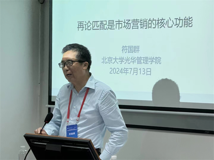 北京大学光华管理学院的符国群教授做了题为“再论‘匹配’是市场营销的核心功能”的主题报告。符国群教授对极易混淆的营销功能这一重要问题进行了澄清,并指出,“匹配”或“供需匹配”是营销最核心的功能。符老师对“匹配”创造顾客价值的机理进行了详尽的阐释,并通过模型进一步说明了供需匹配的过程。