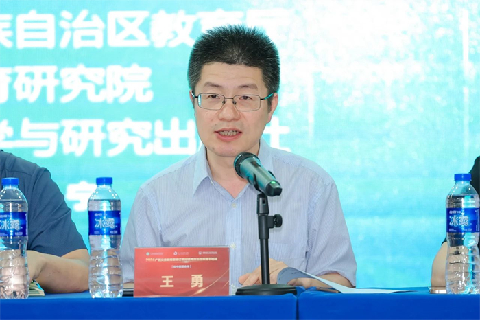 外研社副社长王勇出席开班仪式并致辞。他代表外研社对培训的举办表示祝贺,向长期以来给予外研社信任、关心与支持的广西教育厅、广西教育研究院及广大业界同仁表示衷心的感谢。他表示,贯彻新课标理念,理解掌握新教材,落实核心素养是广大一线教师关注的重点问题,也是此次培训的核心议题。外研社将以专业的团队、优质的教材、完善的服务,不断助力广西英语教师的综合素养提升和广西义务教育的优质均衡发展,为新教材的顺利落地和新课程的顺利实施贡献力量。