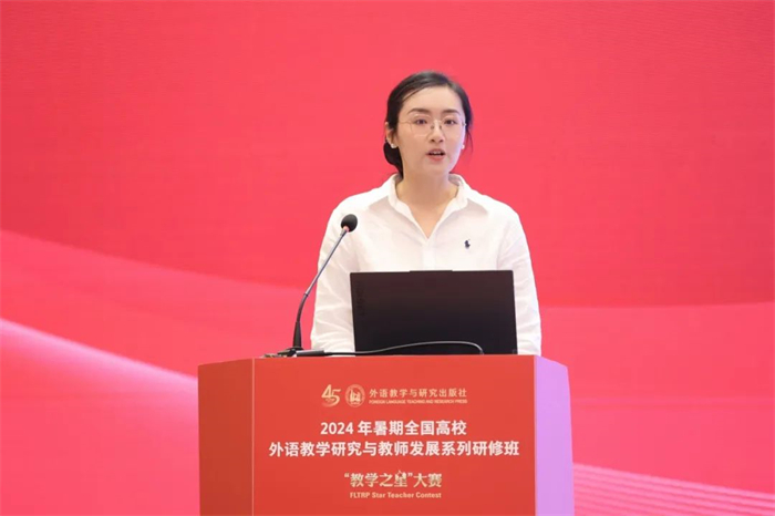 研修班由外研社高等英语教育出版分社社长任倩主持。她表示,在强国建设、民族复兴的新征程上,高等外语教育应奋楫笃行,回答“强国建设,外语何为”的时代之问。外研社回应时代命题,立足师生需求,精心设计2024年暑期系列研修班,以期为全国高校外语教师搭建广阔的交流学习平台,共享教育改革发展成果,共探数智化创新教学实践,共建高质量育人体系。她介绍,外研社积极构建外研育人方案,打造优质教材,革新数智技术,强化国际交流,深化产教融合,服务师生发展,推动高等外语教育高质量发展,为建设教育强国、科技强国、人才强国积极贡献外研力量。