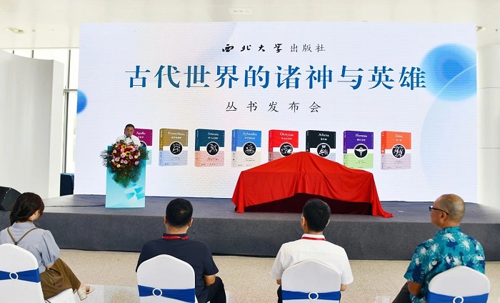 7月26日,由西北大学出版社主办的“古代世界的诸神与英雄”丛书发布会,于第三十二届全国图书交易博览会期间,在山东国际会展中心举办。中共陕西省委宣传部副部长马川鑫,中共陕西省委宣传部印刷发行与反非法反违禁处处长张涛等出席,丛书中文版主编、重庆大学人文社会科学研究院教授黄瑞成,上海社会科学院文学研究所副研究员朱生坚,河南农业大学文法学院教师张云鹤,西北大学出版社社长马来及相关编辑参加。发布会由西北大学出版社副总经理易洋主持。