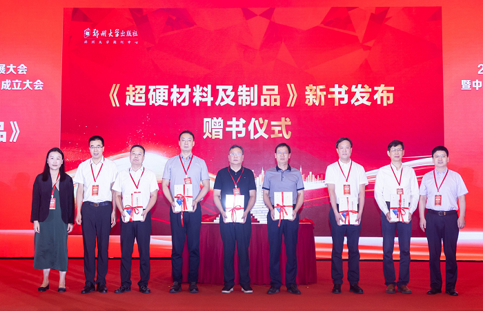 李培根、王秦生、单崇新、孙兆达、孙保营、杨雪冰、崔青峰等共同为《超硬材料及制品》首发揭幕;单崇新、孙保营、杨雪冰代表作者和出版方,向中国机械工程学会、中国机床工具工业协会超硬材料分会、中国材料研究学会超硬材料及制品专业委员会、中国机械工程学会金刚石及制品分会、河南省科学技术协会、全国磨料磨具标准化技术委员会等单位赠送新书。