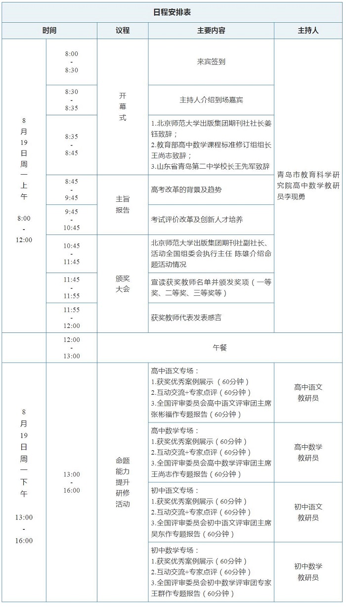 中高考命题活动颁奖大会暨初高中语数两学科命题能力提升