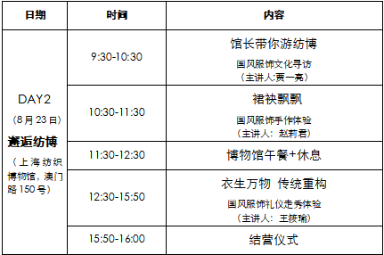 东华大学延安路校区(8月22日) 上海纺织博物馆(8月23日)