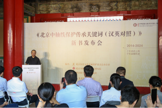 在北京中轴线成功列入《世界遗产名录》之际,2024年8月8日,由外语教学与研究出版社出版的《北京中轴线保护传承关键词(汉英对照)》在北京先农坛正式发布。该书系“中华思想文化术语传播工程”最新成果之一,由北京历史文化名城保护委员会办公室、北京市城市规划设计研究院编写。