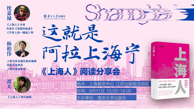 南京大学出版社推出的“城市人系列”之《上海人》是作家沈嘉禄书写上海这座城市的一部随笔集。新书面世以来,读者反映热烈,并于今年5月完成了与中国台北的版权输出。同时《上海人》入围2023年文学报年度好书榜(第二部分非虚构年度入选书目)、入选2023年度影响力图书(文学类),以及入选《江苏省2024年农家书屋重点出版物推荐书目》建议书目(文化类)。写上海人,尤其是市民文化环境中成长起来的上海人,沈嘉禄先生是一位特别合适的人选。于细微之处展示了一座城市的日与夜,过去、现在与未来,不动声色地讲述着城市人的悲欢离合。上海城市精神中有“海纳百川,兼容并包”的特点,这是历史的赐予,也是上海人的品性和族群印记。2024年8月17日,让我们跟随嘉宾沈嘉禄、杨柏伟,感受海派文化在上海人身上的体现。