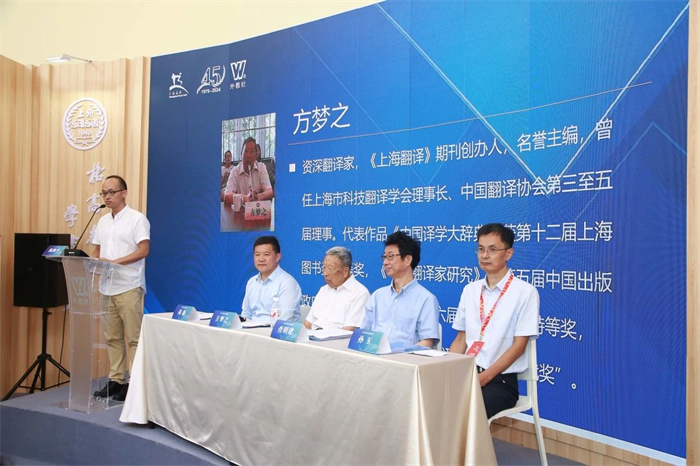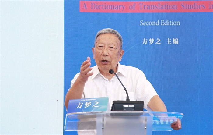 上海外语教育出版社社长、总编辑孙玉编审表示,外教社作为专业外语出版机构,高度重视学术出版,推动外语学科发展,并取得了显著成就,《中国译学大辞典》(第二版)就是很好的体现。翻译在现代学科建设体系建设中起到了奠基的作用,在新时代承担了传播中华文明,讲好中国故事的新使命,而翻译研究中非常重要的一项基础工作就是译学辞典的编写。《中国译学大辞典》(第二版)是翻译学的百科全书式的辞典,编写理念新颖,词条收录广泛。孙玉对方梦之教授给予了高度评价并深表感谢。方老以学识、威望和毅力于一身,这才成就了《中国译学大辞典》的初版,并让第二版顺利出版。作为我国应用翻译研究领域的领军人物,方老治学严谨,用实际行动践行了翻译家的科学精神,为中国翻译事业的发展贡献了自己的智慧和力量!