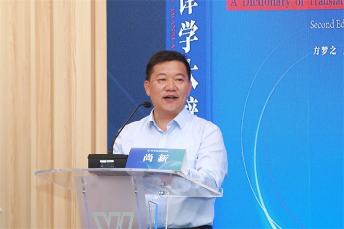 上海大学外国语学院院长、中国英汉语比较研究会副会长尚新教授代表上海大学外国语学院全体师生向方梦之先生的《中国译学大辞典》(第二版)的出版表示热烈祝贺。这部大辞典的编纂周期近20年,由全国百余位专家合作完成,成书极为不易。大辞典的两大特色分别是“中国”和“大”:“中国”的题中之义是要体现辞典的中国特色,在学术命题、学术思想、学术观点、学术标准、学术话语上力求反映我国译学研究的传统脉络和当下水平,做到科学化、精细化。“大”指范围广、规模大,涉及学科众多,可谓学理纵横;词条总数从初版的1900条增至第二版的约2600条。除了体大量广,《中国译学大辞典》(第二版)的亮点还在于布局科学。这本大部头辞典基于方梦之先生自创的“一体三环”的译学体系来进行架构。“一体”,即译学本体,是译学发展之本,千百年来不断壮大、不断完善。“一环”,即语言和语言学,译学发展的原初性、奠基性学科,包括语言、文体、修辞、词汇、词义、语法、语篇、语言学及其分支学科等。“二环”,译学发展的支持性、工具性学科,包括哲学、逻辑学、伦理学、思维科学、认知科学、心理学、文学、美学、信息论、社会学等学科。“三环”,文化与技术,翻译研究的延伸性、复合性、技术性学科,包括文化、词典、网络、语料库、语言服务、翻译技术等。尚新认为,本辞典兼具学术性、史料性、检索性和实用性。作为具有中国自主话语体系的《中国译学大辞典》(第二版),在学术话语自塑方面发挥着举足轻重的作用,具有显豁的中国气派和中国风格。