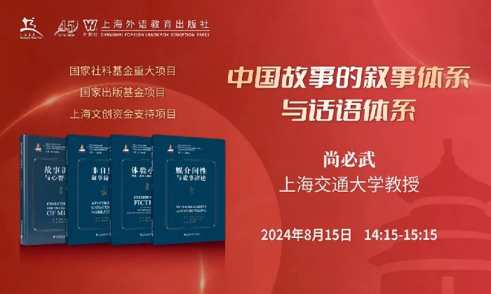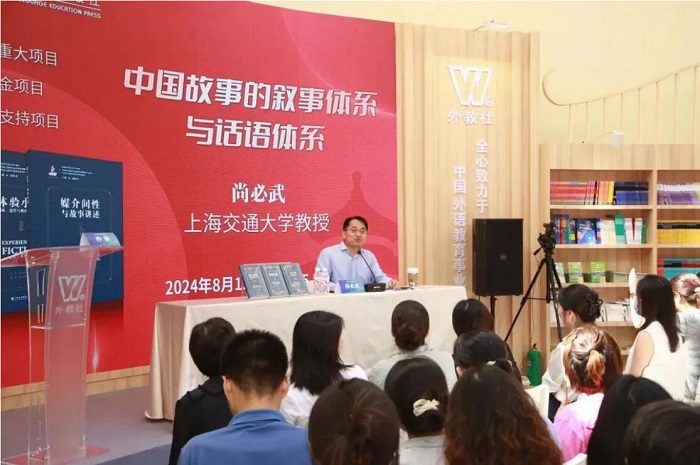 8月15日,外教社上海外语教育学术出版中心特邀国家社科基金重大项目、国家出版基金项目“当代西方叙事学前沿理论的翻译与研究”主编——上海交通大学尚必武教授亲临现场,做题为“中国故事的叙事体系与话语体系”的讲座。