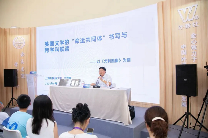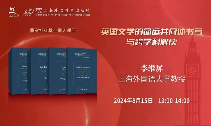 8月15日下午,外教社上海外语教育学术出版中心特邀国家社科基金重大项目“英国文学的命运共同体表征与审美研究”总主编——上海外国语大学李维屏教授亲临书展现场,做题为“英国文学的命运共同体书写与跨学科解读”的讲座。