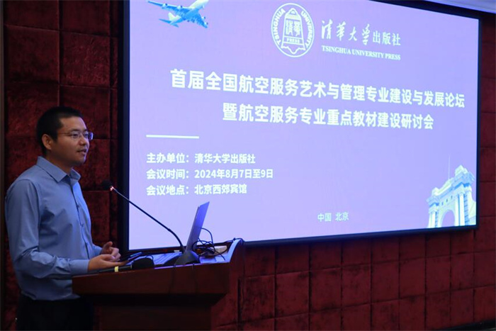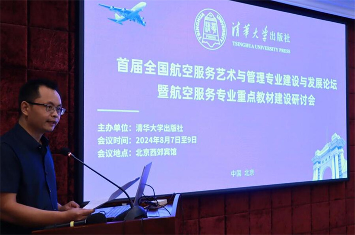 2024年8月8日,由清华大学出版社主办的“首届全国航空服务艺术与管理专业建设与发展论坛暨航空服务专业重点教材建设研讨会”在北京西郊宾馆隆重开幕。此次会议旨在深入贯彻党的二十大报告关于教育的新思想、新战略、新要求,全面落实习近平总书记关于教育的重要论述,加快推进高校航空服务类教育创新发展,研讨 AI+背景下航空服务领域人才培养新路径,推进航空服务高质量人才培养体系建设。
