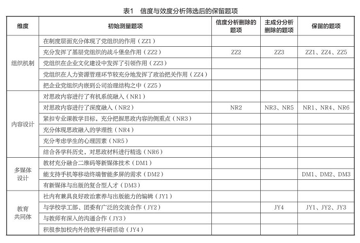 参考Churchill(1979)⑥与Straub 和Carlson(1989)⑦ 提出的量表开发建议,本研究在查阅文献与调研的基础上对高校出版社教材思政建设的概念进行界定,细化概念的表征维度,然后开发测量题项。