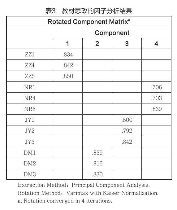 (一)研究结论其一,本研究识别了教材思政的维度。研究发现,教材思政具有组织机制、内容设计、多媒体设计与教育共同体4个表征维度。每个维度各有3个测量题项,共计12个题项。