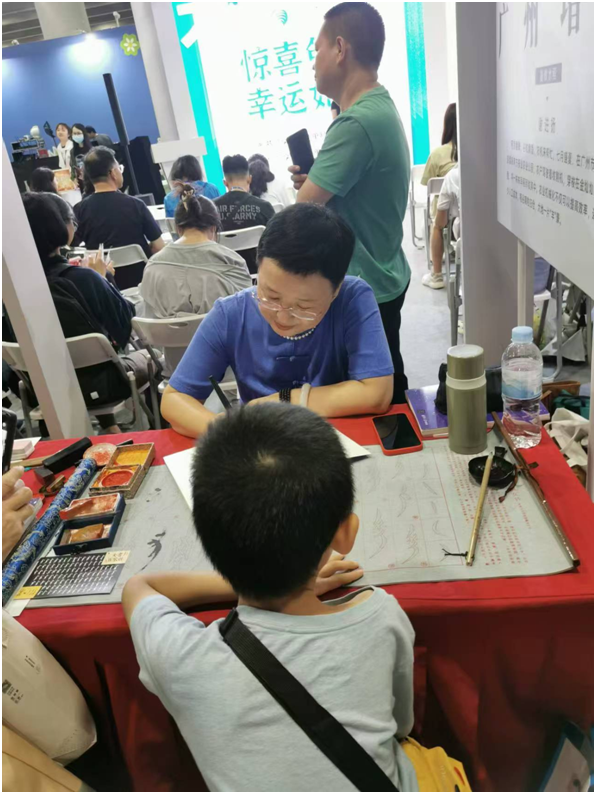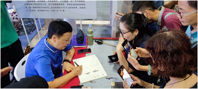 作者现场书写女书,热心读者纷纷围观