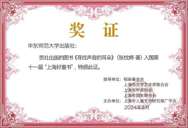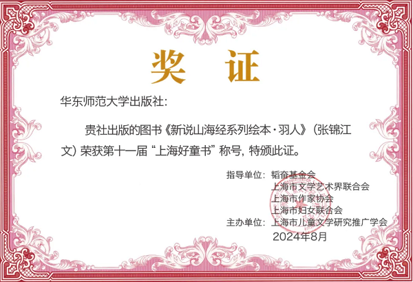 近日,第十一届“上海好童书”奖项揭晓,华东师范大学出版社图书(《新说山海经系列绘本·羽人》(张锦江 文)荣获“上海好童书”称号,华东师范大学出版社图书《寻找声音的耳朵》(张忱婷 著)入围第十一届“上海好童书”。