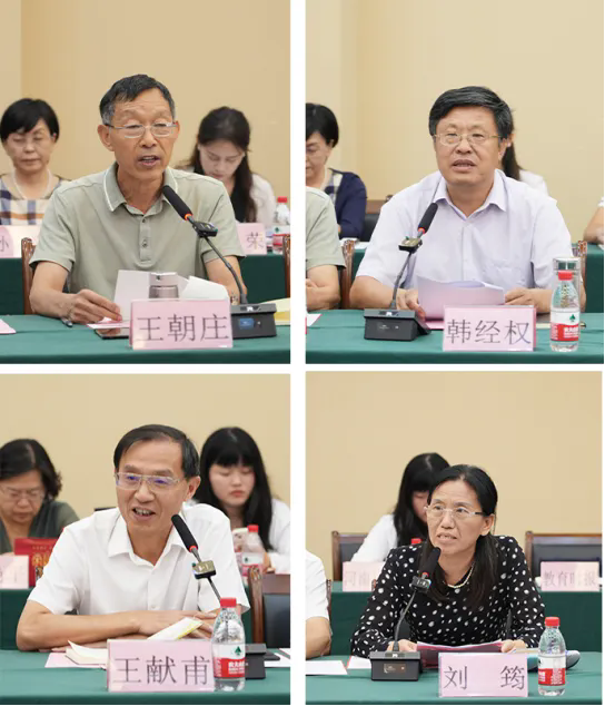 丛书主创人员代表王朝庄、韩经权、刘筠、王献甫满怀深情地回忆了参与丛书编写的艰辛过程。韩经权说,初中分册编写组按照编委会要求,落实了“四个打磨”,即打磨案例,打磨行文逻辑、打磨样章,打磨文字;建立了“五项制度”,即周例会制度、编写互审制度、分册初审制度、家长试读制度、集体审修制度。每一个章节的形成,起码要经过20次以上的修改,请家长社会贤达参与讨论审改,面对面审读不讲面子,背靠背审读直言不讳。初中分册编写组线上集中审读27次,分组讨论线上51次,线下36次。可以说是字斟句酌,酌而又酌。