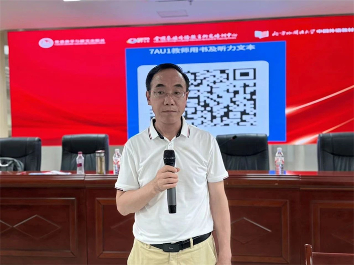 夏谷鸣老师基于英语教育者的职责,深入阐述了在新时代背景下,英语教师的职责不仅限于传授语言知识,更应致力于提升学生的语言素养。夏老师对《英语》(新标准)初中新修订教材的编写理念、单元架构、活动设计以及其特色进行了深入分析,并为教师们如何有效使用新修订教材提供了具体的指导。他最后指出,新修订教材配备了全面的辅助教学资源,旨在辅助教师的教学活动,提升教学效果,使得教师能够更专注于对学生个体的指导,以促进学生的全面成长,培育出符合新时代需求的人才。