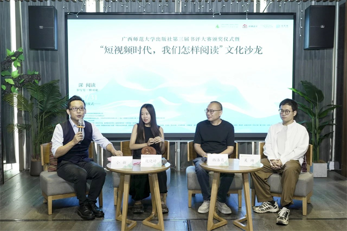 8月31日,广西师范大学出版社第三届书评大赛颁奖仪式暨“短视频时代,我们怎样阅读”文化沙龙通过线上线下相结合的方式,在桂林独秀书房·旗舰店举行。