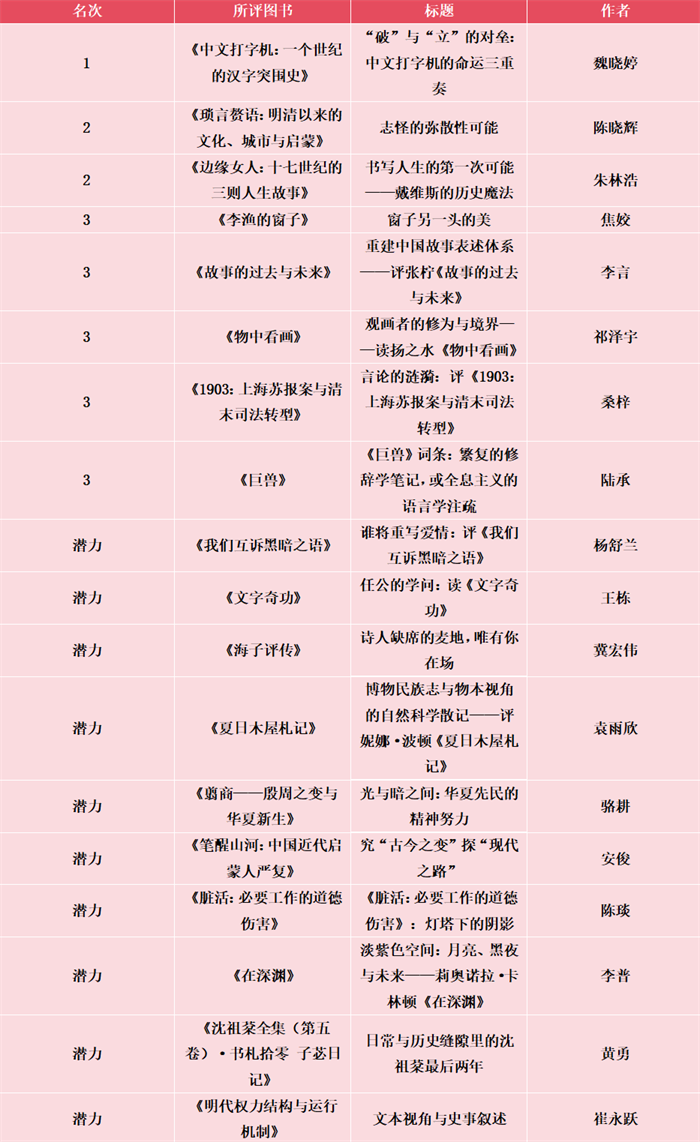 特别支持:书香两岸、好书探、中华读书报、新京报书评周刊、深港书评、经观书评、微博读书、澎湃新闻、《读者》(原创版)