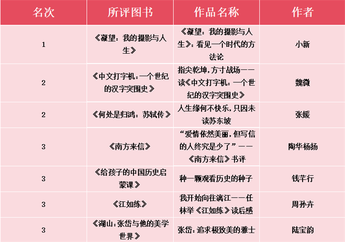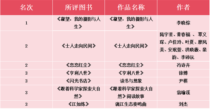 广西师范大学出版社第三届书评大赛主赛道获奖名单