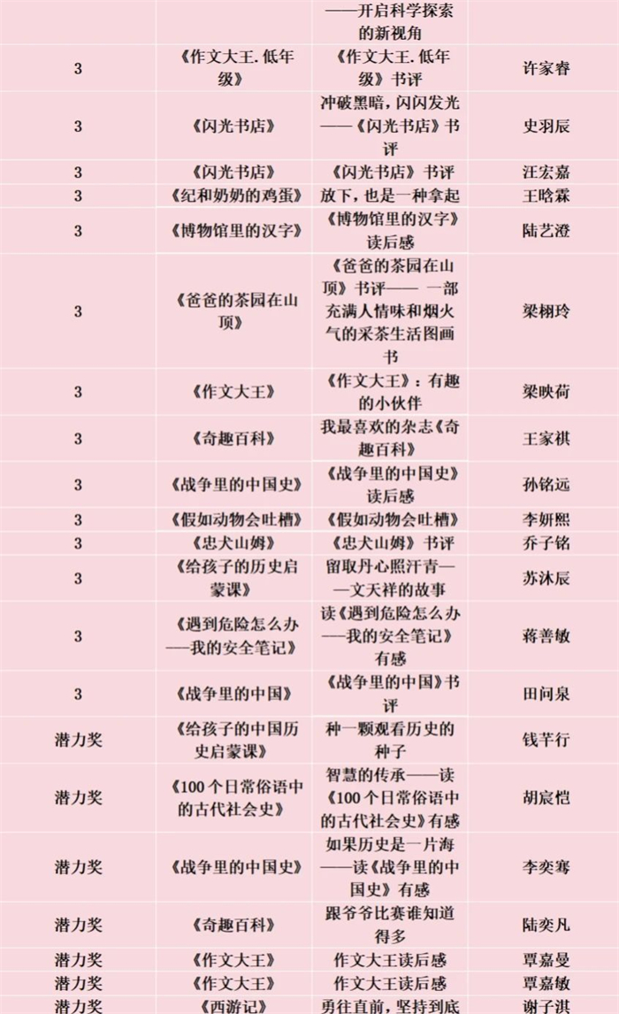 广西师范大学出版社第三届书评大赛春苗赛道获奖名单